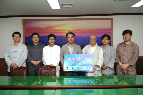 수암사 포교원 신도회에서는 8월 30일(금) 14시 추석맞이 사랑나눔으로 백미 10kg 100포를 동구 민간사회안전망동구협의회(위원장 서석갑)에 기탁하였다.
